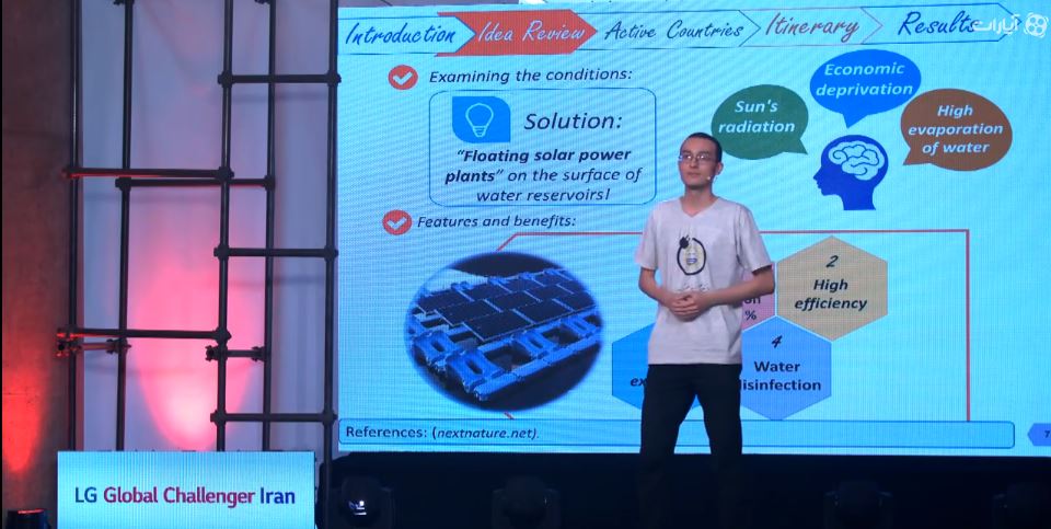 گروه ۲۴۲: سرگروه: مجتبی نورورزپور/ دانشگاه علم و صنعت ایران، رشته مهندسی مکانیک/ نیروگاه شناور خورشیدی/ ژاپن